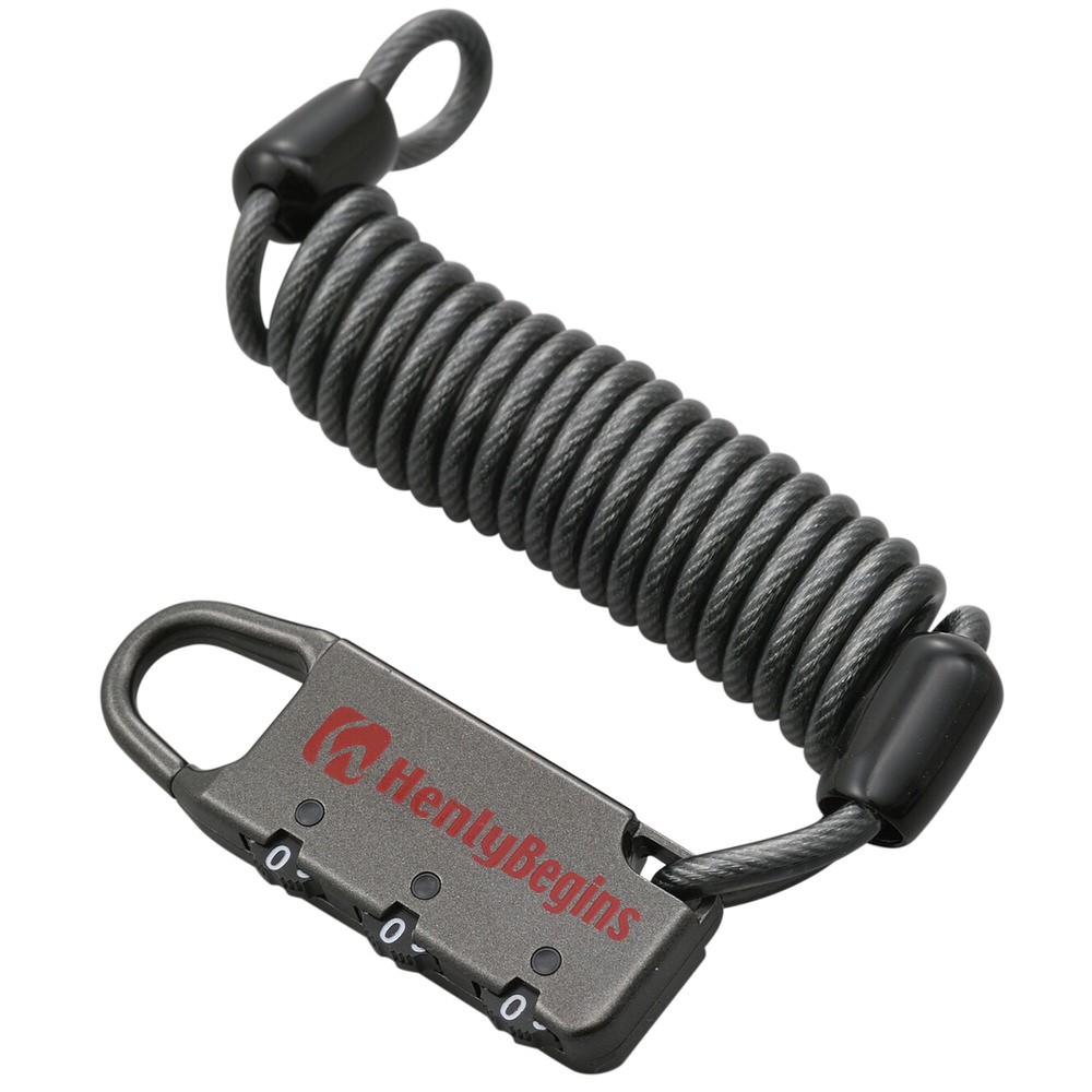 【適合】汎用 【商品説明】ヘッド回転機能でさらに使いやすく、数字設定も確実なボタンタイプにリニューアル。 ●ヘルメットやバッグのイタズラ抑止に有効なダイヤルロック。 ●ヘッドが360度回転するから使いやすい。 ●ロックは「0〜9の数字3桁」で任意に設定可能。 ●また、不意にセットした数字が変わる事がなく、安心して使用できる新規ロック機構採用。 ●ワイヤー長:1200mm ●南京錠対応ファスナー(リングタイプ)を採用したバッグに取り付けが可能。