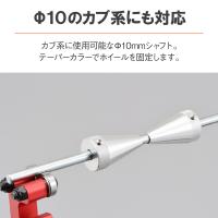 【適合】汎用 【商品説明】ホイールのバランス調整と振れ調整、ベアリングチェック、スポークホイールの張り・調整が簡単にできる折りたたみ式スタンド。 ●ホイールのバランサー調整時のシャフト脱落防止クリップ付き。 ●調整可能サイズ:最大21インチ、リム幅6.0J、タイヤ幅190まで ●シャフト径:φ10(50ccのカブ系にも使用可能) ●重量:3.3kg ●※スポークの張り調整には別途工具が必要です。