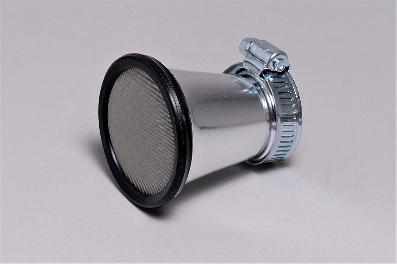 【適合】汎用 【商品説明】軽量なアルミ製のファンネルです。 ●吸気部のネットが異物の吸い込みを軽減します。 ●高い吸気効率を実現します。 ● ●■内容品 ●エアファンネル 1ヶ ● ●■製品詳細 ●取り付け口径 φ35mm ●全長 65mm ● ●■カラー ●アルミ製シルバー ● ●■生産国 ●台湾 ● ●■注意事項 ●ネット部分は定期的にクリーニングを行い、吸い込みの妨げになるような汚れを落としてください。 ●エアフィルター仕様からエアファンネル仕様にする場合、キャブレターのセッティングが必要です。 ●取り付け部はバンド締めとなります。適正なトルクで確実に締め込みを行ってください。 ● ●■備考 ●ステンレスストレーナーは脱着可能です。