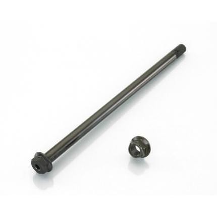 【適合車種】モンキー125(MONKEY125)※ABS車使用不可となります。 【適合型式】2BJ-JB02 【商品説明】バネ下重量を軽減させる、中空穴を空けたスチール製、ブラック仕上げの軽量アクスルシャフトです。 ●シャフト長(首下長さ):250mm ●シャフト重量:約199g(ノーマル重量234g) ●中空穴径:φ5 ●適合純正品番:44301-K26-900