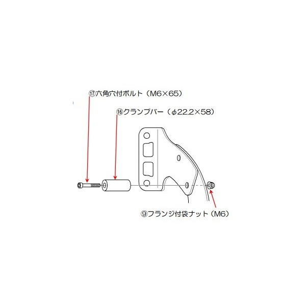 【適合品】デイトナ製ウインドシールドSSシリーズ(車種共通) 【備考】※原付二種用ウインドシールドSSシリーズ共通の補修部品です。 【商品説明】セット内容詳細についてはウインドシールド取扱説明書を参照の上確認ください。 ●セット内容:クランプバー(Φ22.2×58)×1個、六角穴付ボルト(M6×65)×1個 ●※画像はイメージとなりますのでご注意ください。