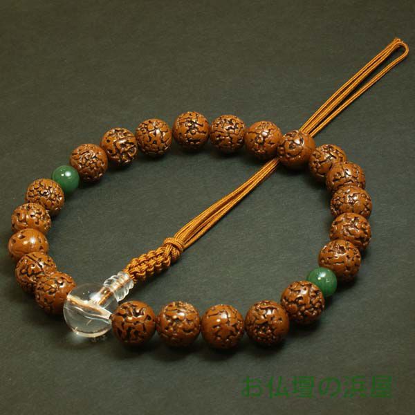 数珠(念珠) 金剛菩提樹・翡翠(ヒスイ)[二天]仕立 22珠 紐房 男性用一連 ●お仏壇・仏具の浜屋
