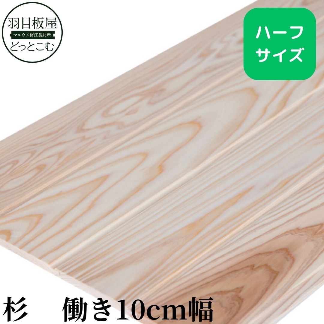 杉 羽目板 (腰壁用)無節・上小 ハーフサイズ (木材 10×100×960 15枚) 1束 本実めすかし加工