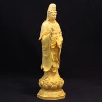 観音菩薩立像 20cm 天然木製(柘植ツゲ) 観音像 木彫仏像