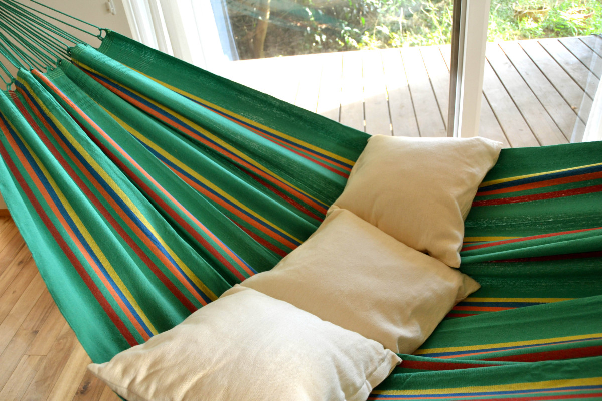 布タイプのブラジリアンハンモックは、細い糸で編まれたメキシカンハンモックよりも丈夫で長持ち。