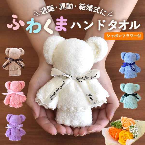 ソープフラワー プチギフト 退職 ハンカチ ギフト ハンドタオル 異動 挨拶 くま タオル 産休 お礼 花 転勤 出産 内祝い お配り 卒業 結婚式 ホワイトデー