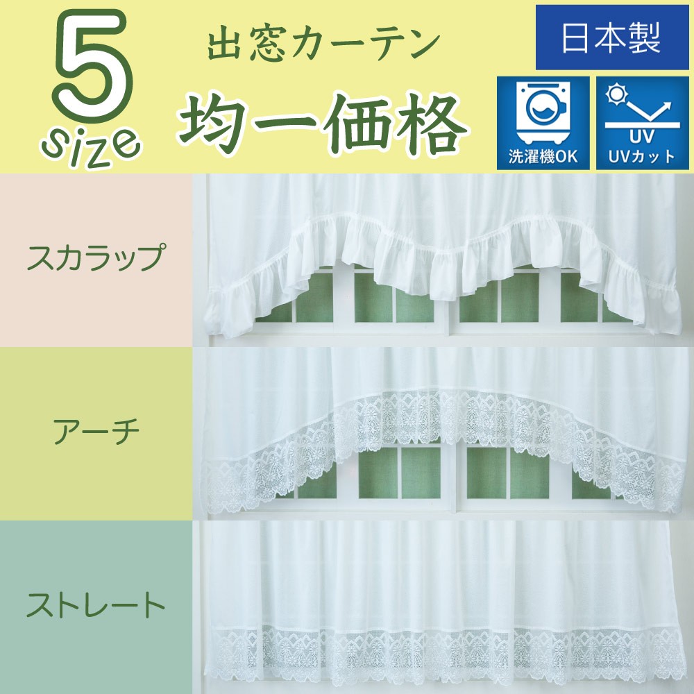 出窓用カーテン幅300cm×丈88〜133cmミラーレースUVカット洗濯機OK日本製 窓幅に合わせて自由調整 1枚 おしゃれ