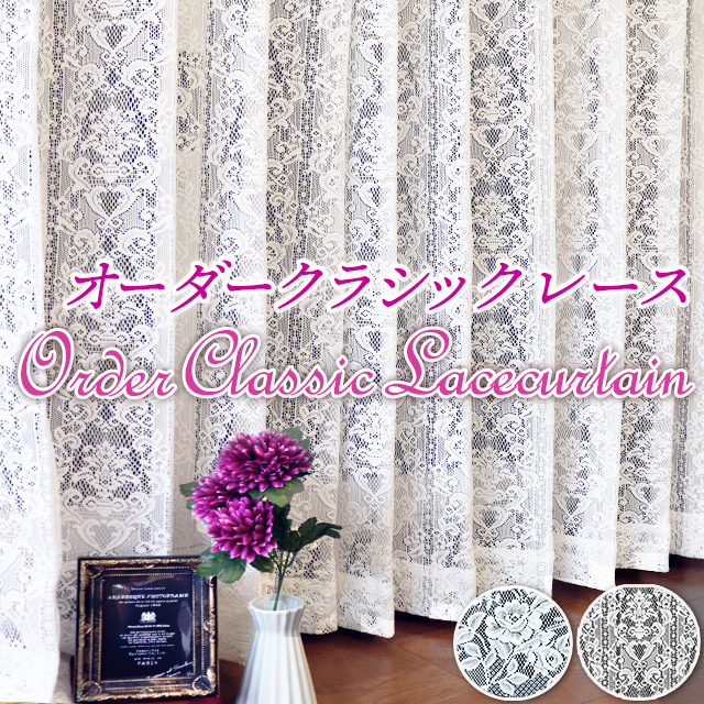 オーダークラシックレースカーテン 幅50〜100cm x丈60〜140cm ミラーレース プライバシー保護 UVカット クラシック レトロ デザイン 省エネ 洗濯機OK 日本製