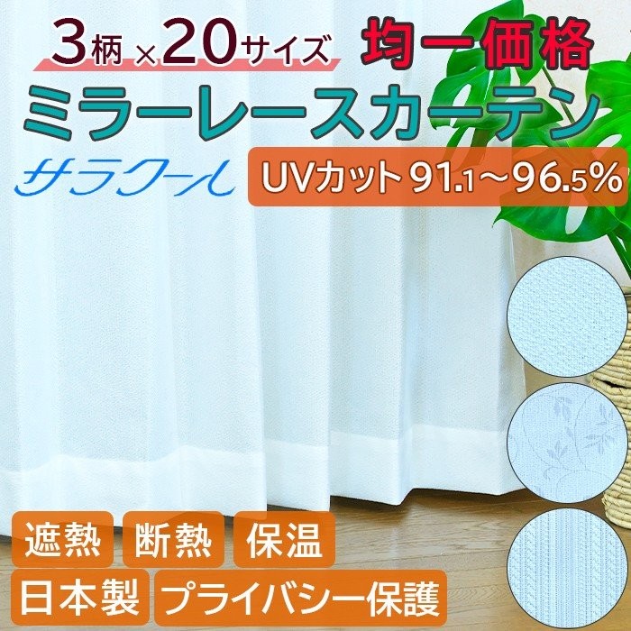 UVカットミラーレースカーテン ユニチカ 遮熱 断熱 保温 省エネ プライバシー保護 遮像 2枚組 1枚入り 洗濯機OK 日本製 サラクール
