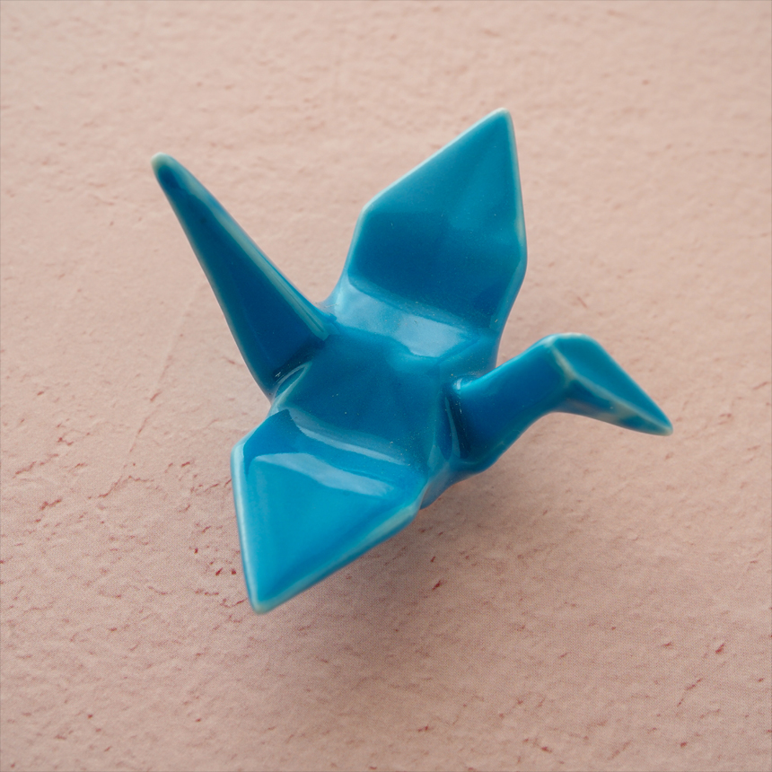 折り鶴の形を陶磁器で見事に仕上げてあります。