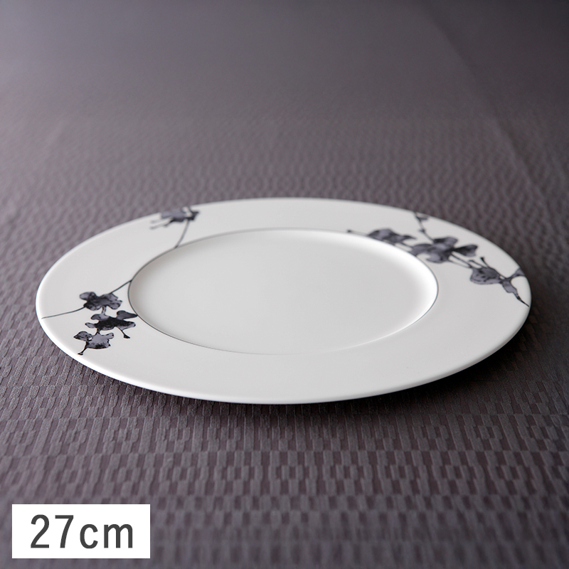 ナルミ グレイスフラワー デイナー皿 27cm モノトーン // お皿 大皿 メインディッシュ アラカルト プレート 花柄 鳴海製陶 なるみ ナルミボーンチャイナ おしゃれ 素敵 きれい モダン 上品 磁器 日本製 国産 プレート かわいい ホテル カフェ風 業務用 家庭用 グレイスフラワー ご希望数量お取り寄せ可能