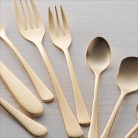 シンプルなフォルムと優しいゴールドがお洒落。優雅で上品な雰囲気のカトラリー。つやを消して落ち着いた光沢に仕上げた、マットタイプです。傷や、くもりよごれも目立ちにくいので、デイリー使いにぴったり!ベーシックな白い食器とも相性抜群です。