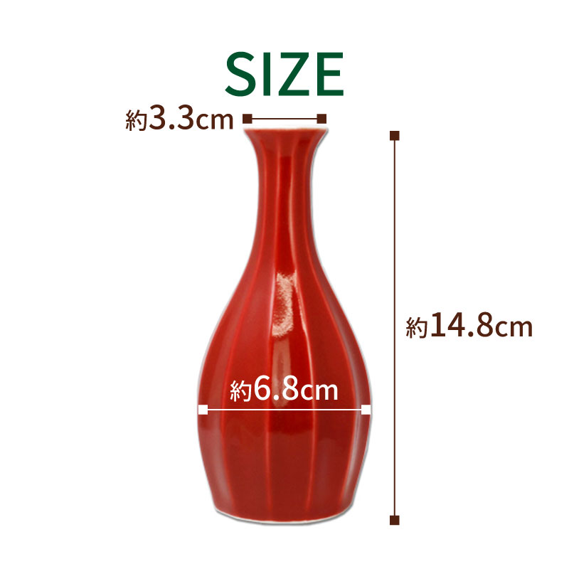 深みのある赤釉がパッと目を引く、華やかで活気あふれる印象の徳利です。