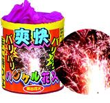 ちょっと小型の赤ちゃん噴水花火です。 だけど・・・高さは約3m、半径約5mも噴出すバリバリ爽快ハジケル花火なんです! 銀色の火花が縦横無尽に動き回ります。