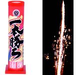 純国産 銀色のバラ星とともに銀色の柱が高く打ちあがります。 高さ約20m打ち上がります。