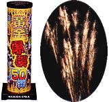 | 黄金が湧き出る夢を叶えてみませんか♪ 石油が湧き出るかのように、黄金がザクザク♪ 屈強な男達が、ついに黄金の鉱脈を発見しました! つるはしで、「バリバリ!バリバリ!」山を削ります。 すると、遂になりました! 黄金がざっくざっく、ザックザックと湧き出てまいります! まさに、金星♪よくやりました! 音も自慢の花火です♪  連発打上花火! 金色の爆裂星が夜空に向かって50発! 5本の筒からそれぞれ2個の星が連続して高さ約20m打ち上がり音がします。 音星!金星!  50連発! 大きさ 27cm |
