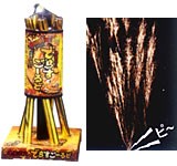 50連発! 10年(ぐらい)前に「でらすご70連発」が誕生しました。でらすご70連発は、 7本の筒から赤・緑・銀・黄の色星とバリバリ音の音星合計70発の連発打上げ花火でしたが、こちらは、5本の筒から「金色」のバリバリ星のみと「笛」の、名古屋らしい、「ど派手」な、「ゴージャス」な、「でらすご」にパワーアップしての誕生です! 名古屋城の「金鯱」を連想させる逸品です。 金鯱は一対で慶長大判1940枚分、純金にして215.3kgの金が使用されたそうで、そのぜいたくぶりにより、製作禁止令が出るほど。