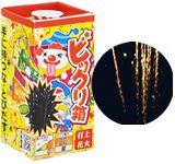 点火すると、6〜7秒後に錦星と赤変化星、そして緑と白の2色の点滅星が一斉に約20m打ち上がります。音も大きめです。