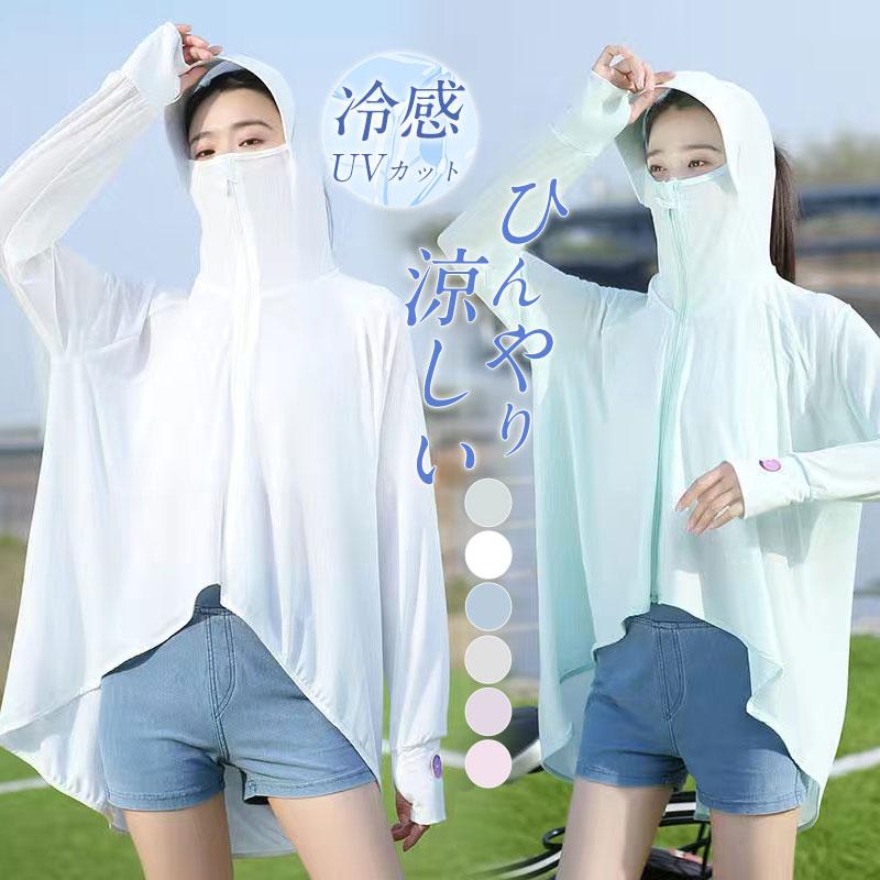 uvカットパーカー レディース 涼しい 冷感 自転車 大きいサイズ フード付き 日焼け防止 首 フェイスカバー ネックカバー アームカバー