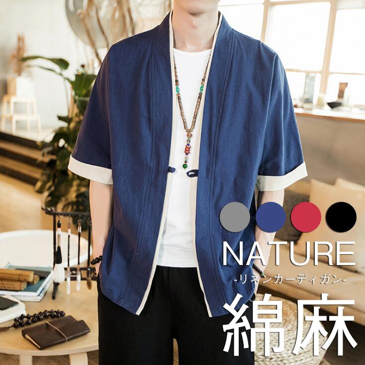 羽織 カーディガン 甚平 薄手 五分袖 メンズ 和風 着物 部屋着 ルームウェア 綿麻 冷房対 策 コーデ おしゃれ 涼しい 夏