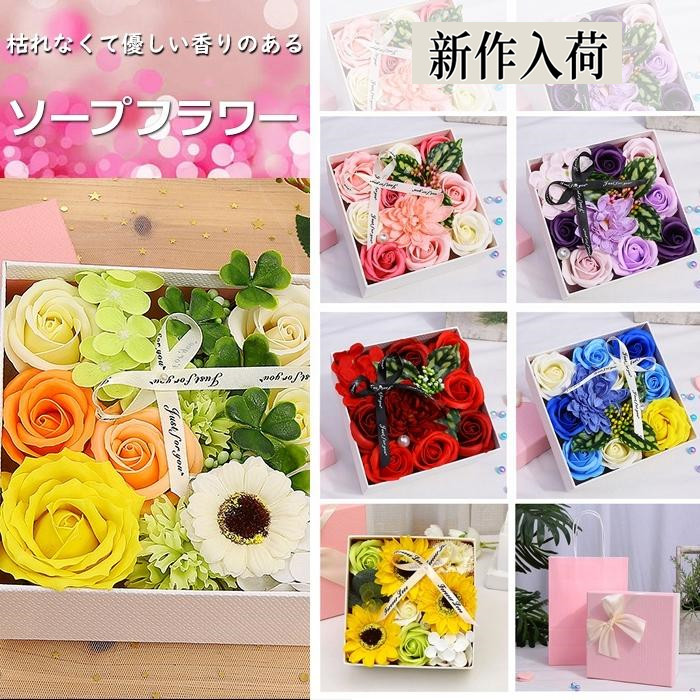 ギフト ソープフラワー ボックスフラワー 造花 フラワー 石鹸花 枯れない花 スクエアボックス プレゼント 結婚祝い バレンタインデー 母の日 観賞用 お祝い 敬老の日 お誕生日 イベント 卒業式 お見舞い フラワーボックス フラワーブーケ 石鹸 花束造花