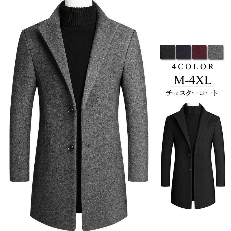 チェスターコートメンズ メルトン スタンドカラー ウールコート テーラードジャケット ロングコート ウール コートアウター ビジネス カジュアル 暖か 冬服