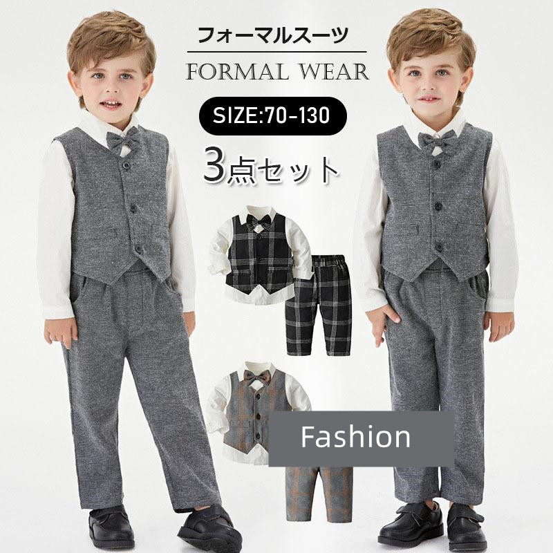 おしゃれ 子供服 ツイード チェック 子供 スーツ 3点セット キッズ フォーマル 男の子 ベビー スーツ 入学式 卒園式 ツイード スーツ タキシード 結婚式