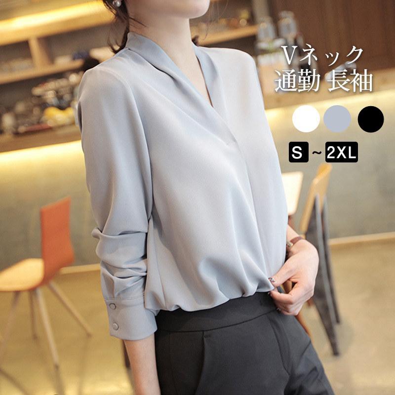 激安 シャツブラウス レディース きれいめ 春夏秋 オシャレ セレモニー 一部即納 シフォン オフィス 長袖 トップス Vネック 上品 大人 通勤 ゆったり