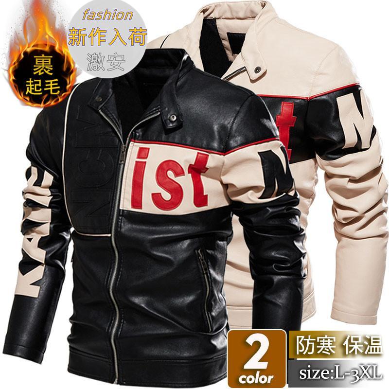 バイクジャケット メンズ ライダース革ジャケット 革ジャン レザージャケット 革ジャケット PUレザー バイク レザー 防風 PU 裏ボア バイカー