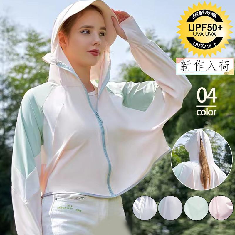 ラッシュガード レディース UVカット パーカー 長袖 紫外線対策 フード付き 冷感素材 日除け 切り替え ウォーキング 自転車 ドライブ アウトドア