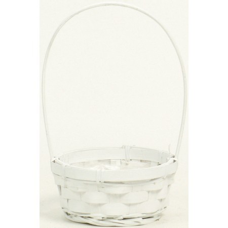 ■竹材をホワイトに塗装した、ナチュラルテイストの可愛らしい持ち手付き丸形竹籠。