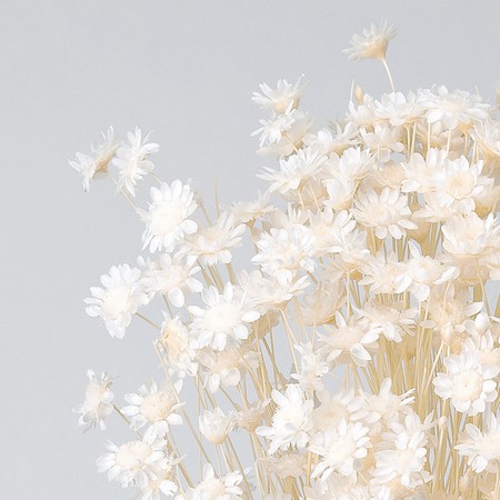 ◎茎については細く繊細な為、強いさらし加工(白くする作業)を行うことができず元の素材の色(茶-グレー)が残っている場合がございます。また花部分を優先的に白くしているため、茎の下部は色が残りやすくなっております。茎部分については原料由来の綿のようなふわふわしたものが付着している場合がございます。