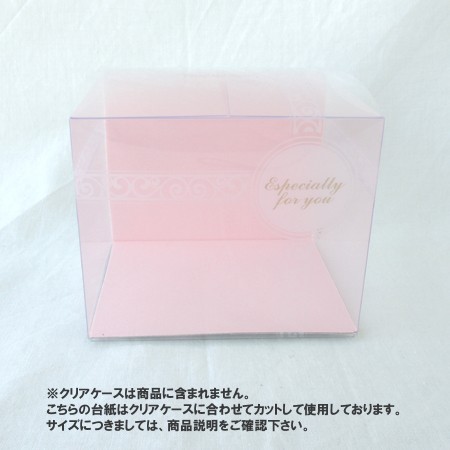 クリアケース用の背面のついた台紙です。背面がカバーされているので、完全に前方見を意識してアレンジメントを作ることが出来ます。また、作品の後ろ側を気にせず、ケースの中に世界観を持たせられるのも魅力。クリアケースの底面に乗せますが、その時に台紙が浮いて安定しないような場合には両面テープ等でケースと固定すると扱いやすくなります。他メーカーのクリアケースともサイズを合わせていただければ、特に問題なくご利用いただけます。L字型台紙をご利用の場合もフラット台紙同様、運搬するようなシーンでなくてもできるだけ両面テープ・クッションテープ等で作品と台紙を接着しておくことをおいた方が、ちょっと当たってしまったときなどに安心です。ボール紙のような厚紙なので、簡単にハサミでカットもできます。