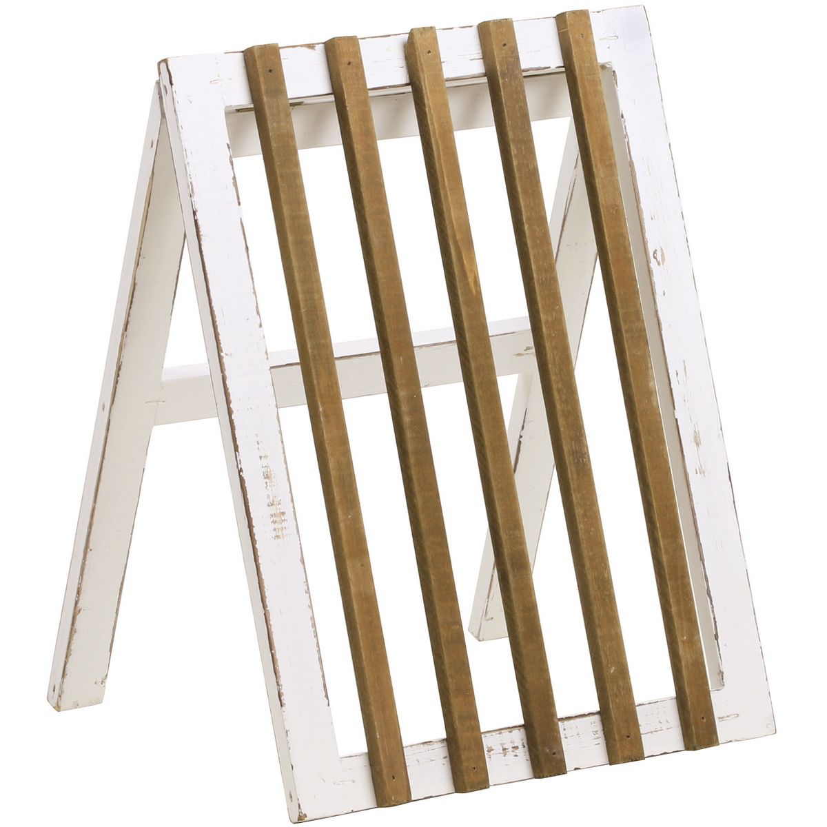 中央の縦格子上部の切欠きがフックになります。折り畳みが可能なスタンドです。染色しておりますため、水濡れ・摩擦等で色落ちや色移りする恐れがあります。