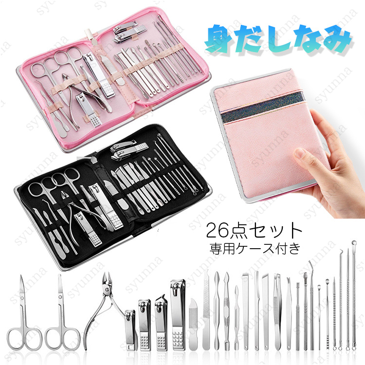 br113# 身だしなみセット 当日発送 26点 爪切りセット つめ切り 耳かき ニッパー やすり ネイルケア ステンレス製 甘皮取り 手足 女性用 男性用