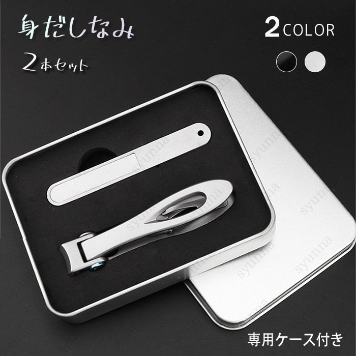 br187#爪切り 爪ヤスリ 2点セット 当日発送 つめきり 飛び散り防止 大口 手足用 携帯用 ステンレス 専用ケース付き 巻き爪 美爪 硬い爪 足の爪 変形