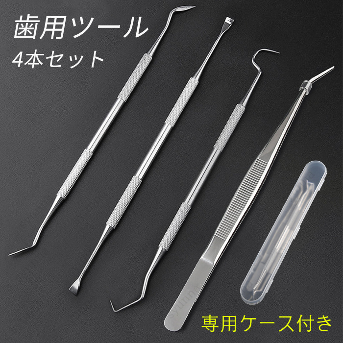 歯石取り器具 (#br48) 4本セット 当日発送 デンタルツール 自宅用 ステンレス製 歯間 ヤニ 歯垢取り 口臭予防 歯石取り スケーラー 歯石取り ケース付き