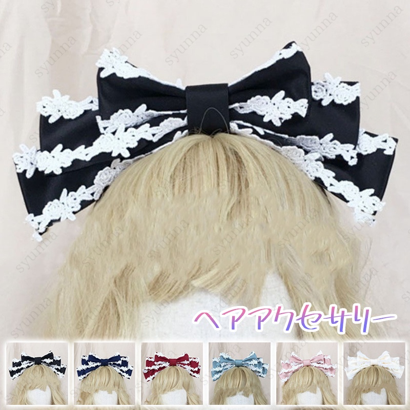 カチューシャ リボン (h109a#) 当日発送 6color 髪飾り ヘアアクセサリー 幅広 可愛い メイド ロリータ ヘッドドレス 文化祭 ハロウィン 学園祭 コスプレ レース
