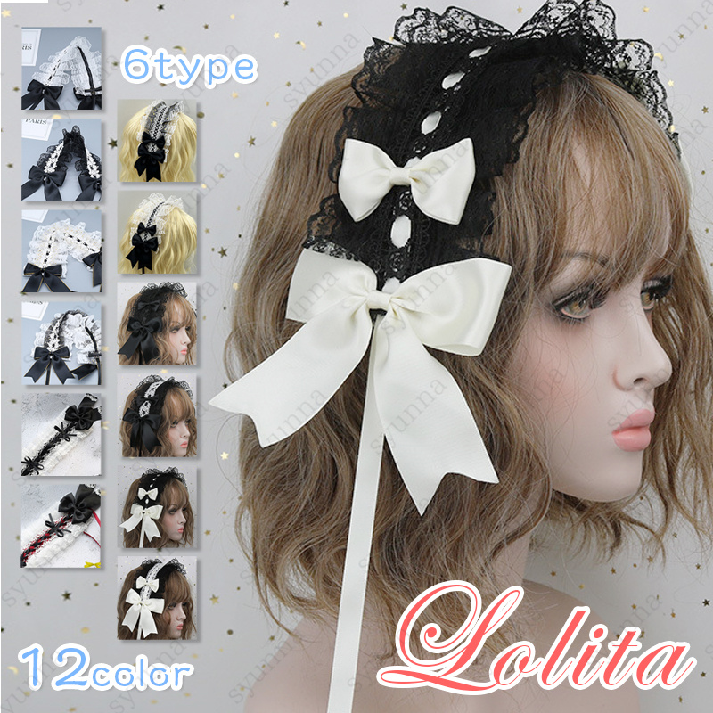 カチューシャ (h126#) 日本国内当日発送 6type 12color リボン ヘアアクセサリー ロリータ 髪飾り ヘッドドレス レディース 蝶結び ゴスロリ レース メイド