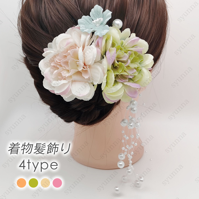 ●4type 成人式の可愛い着物髪飾り、髪飾りに使う時間を短縮!