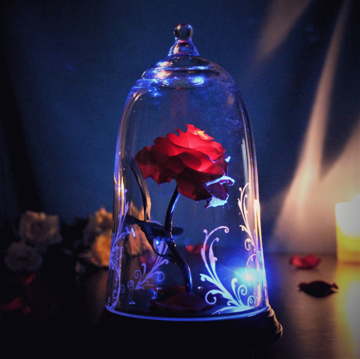 美女と野獣 光るバラのプリザーブドフラワー レット 誕生日プレゼントや記念日、プロポーズにぴったり LEDライト付きでおしゃれなインテリアにも