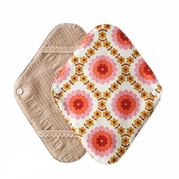 オーガニックコットン 布ナプキンホルダー レトロフラワー レッド 1枚入り 生理用 落ちない ずれない 布ナプキン初心者におすすめ 華布
