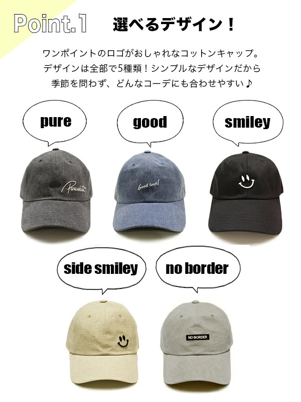 シンプルなロゴ入りキャップは、様々なファッションにおすすめ。