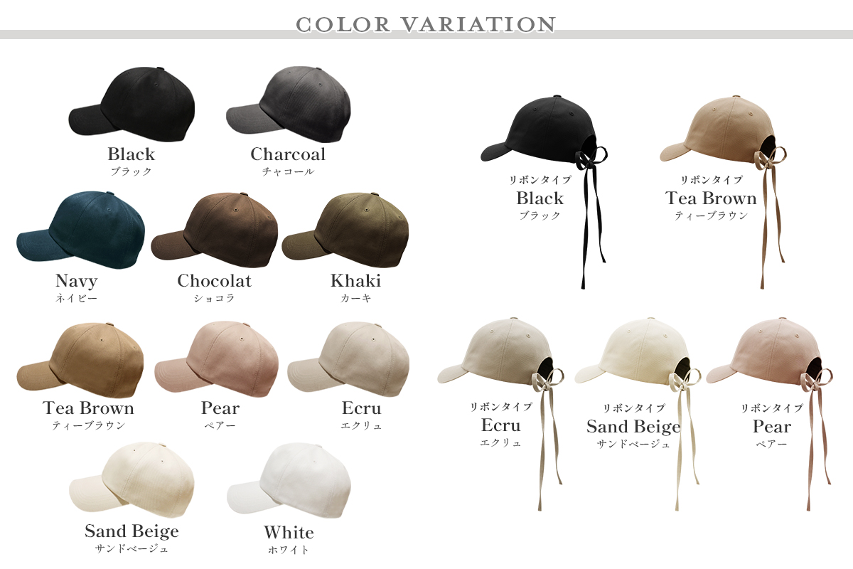 上品でキレイめファッションにも合わせやすい、コットン100%無地キャップ。