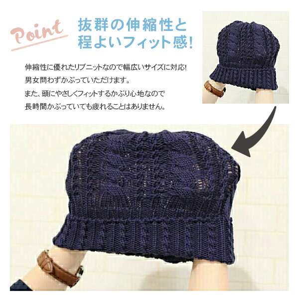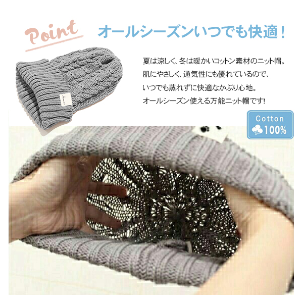 ニット帽 春夏 綿100% 医療用帽子 コットン 抗がん剤 帽子 外出用 サマーニット帽 薄手 レディース メンズ おしゃれ /hanahana Cotton Cable Knit Cap