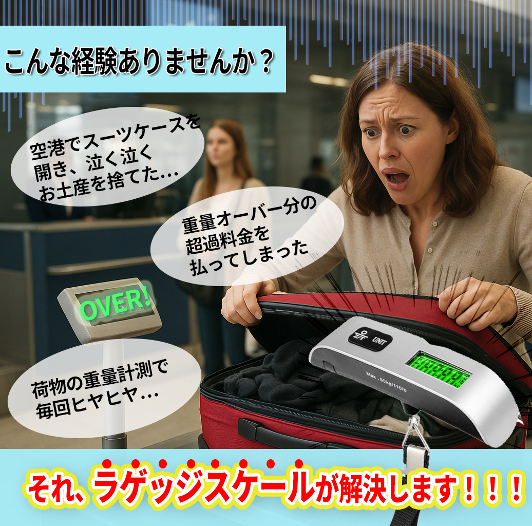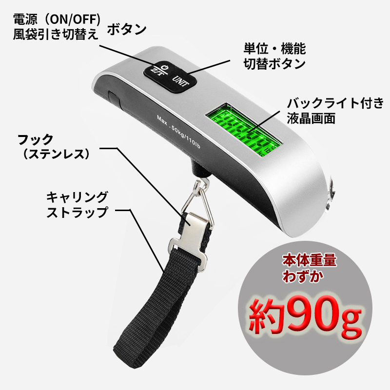 そんなトラブルを防いでくれるのが、こちらのデジタルラゲッジスケール(はかり/ハカリ)です。