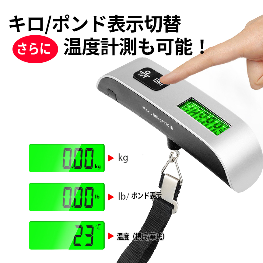 キロ・ポンド表示が可能で、さらに温度計測機能も搭載。