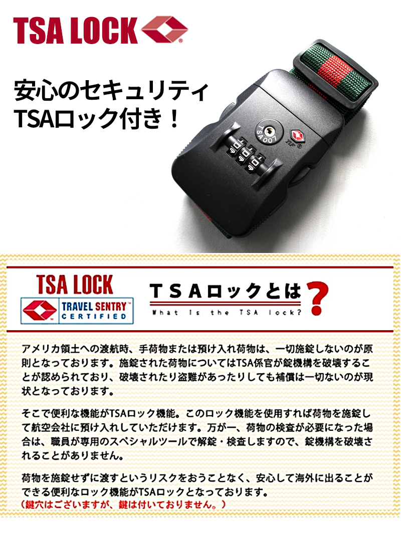 | ■ご注文前にご自身のスーツケースのサイズをご確認ください。 ■鍵穴は空港職員の検査用になります。鍵は付属しておりません。 ■空港によってはTSAロックでも施錠しないように求められる場合が御座います。 ■軽微なほつれやシワ、多少の汚れなどお客様でご対応できる問題については不良品対象外とさせて頂いております。 ■入荷時期によって多少の色味やデザインが異なる場合がございます。ご了承の上、ご購入をお願いいたします。 ■お客様都合(イメージ違い)、ご使用に問題の無いキズ・汚れ等による返品交換は承っておりません。 ■サイズにつきましては実数値と規定値で多少の誤差が生じますのであらかじめご了承ください。 ■商品サイズ・カラーは、企画サイズとなります。 ■掲載の商品画像につきましては、モニターの種類・設定等により、実際の商品とは素材感や色味が異なる見え方をする場合があります 。■商品仕様は、予告無く仕様変更される場合がございます。 ■アウトレットにて販売しております。アウトレットの訳有り品として ・多少の傷や汚れがある ・チャックが少し固い ・縫製が少し甘い ・縫製のラインが少し歪んでいる ・ミシンで縫いすぎて糸をほぐした跡がある ・梱包には再利用箱を利用している ・タグのついていない商品がある ・多少のにおい等(接着剤やクリーニング液)が残っている といった上記の状態の商品が含まれている場合がございますが、予めご了承願います。 ■アウトレット商品に関しましては国内での検品は一切しておりません。 | |