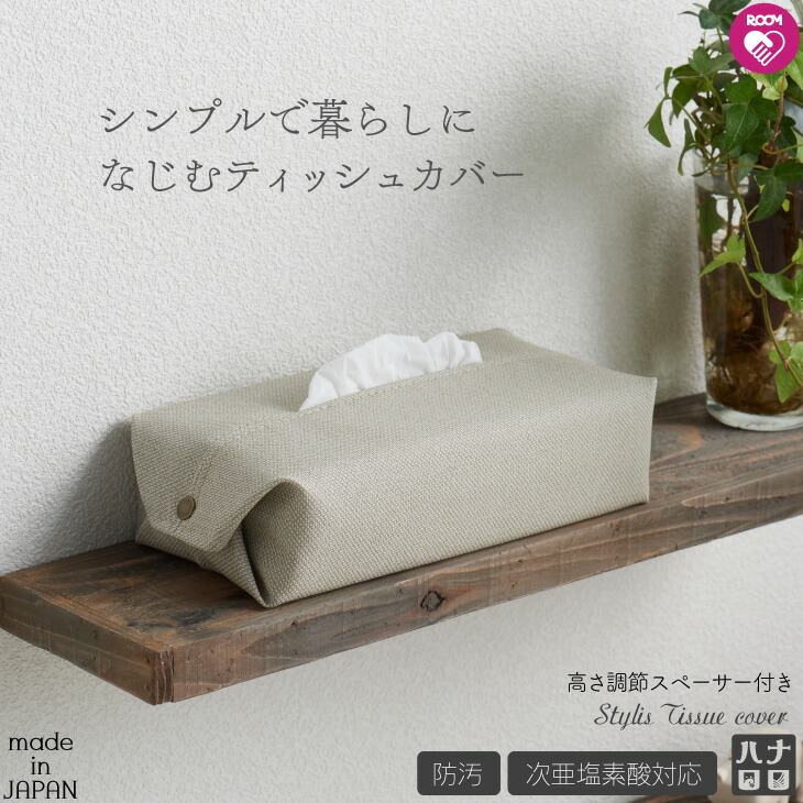| 肌ざわりの良い、 日本製の綿麻織物のエッセンスを プリントした合皮レザーのティッシュカバー。 落ち着いた色合いとなめらかな質感で、 お部屋にもなじむティッシュカバーです。 |