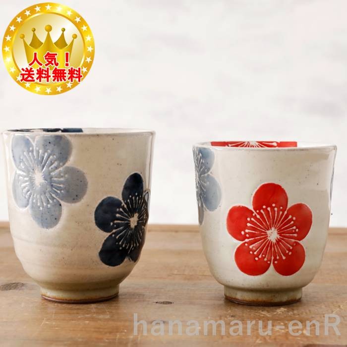 波佐見焼 湯呑み ペアセット 勲山窯 化粧梅 夫婦湯呑み ゆのみ 湯のみ 湯飲み はさみやき はさみ焼き